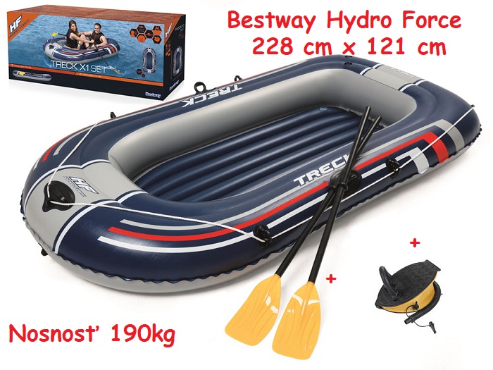 Bestway 61083 Nafukovací čln Hydro Force + veslá + pumpa 228cm x 121cm, modrý