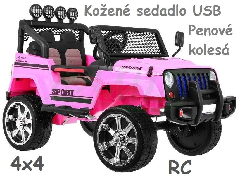 JOKO Elektrické autičko Jeep Raptor 4x4, penové kolesá, USB, FM rádio, kožené sedadlo, ružové