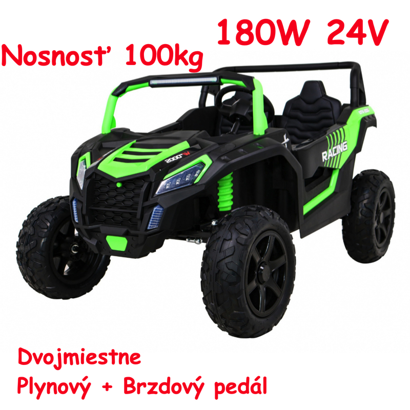 JOKO Elektrické autíčko Buggy ATV STRONG Racing 180W 24V, nosnosť 100kg, brzdový pedál, Dvojmiestne, nafukovacie kolesá, zelené