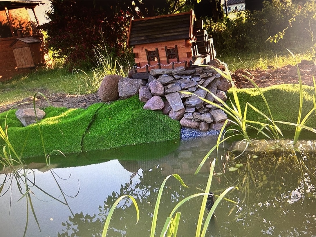 Vyvedená hadica umožňuje pripojenie čerpadla, napríklad z jazierka. Tečúca voda ktorá bude tiecť z vyvedenej namontovanej hadičky v mlyne bude poháňať mlynské koleso.