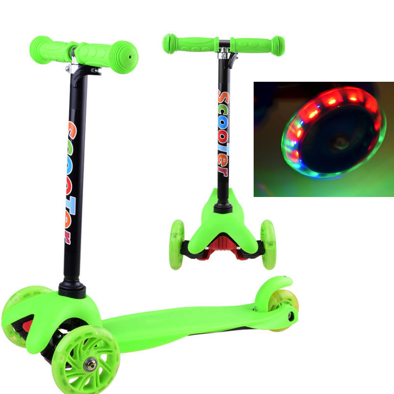 JOKO Detská Kolobežka Trojkolesková Scooter so svietiacimi kolesami, nosnosť 40kg, zelená