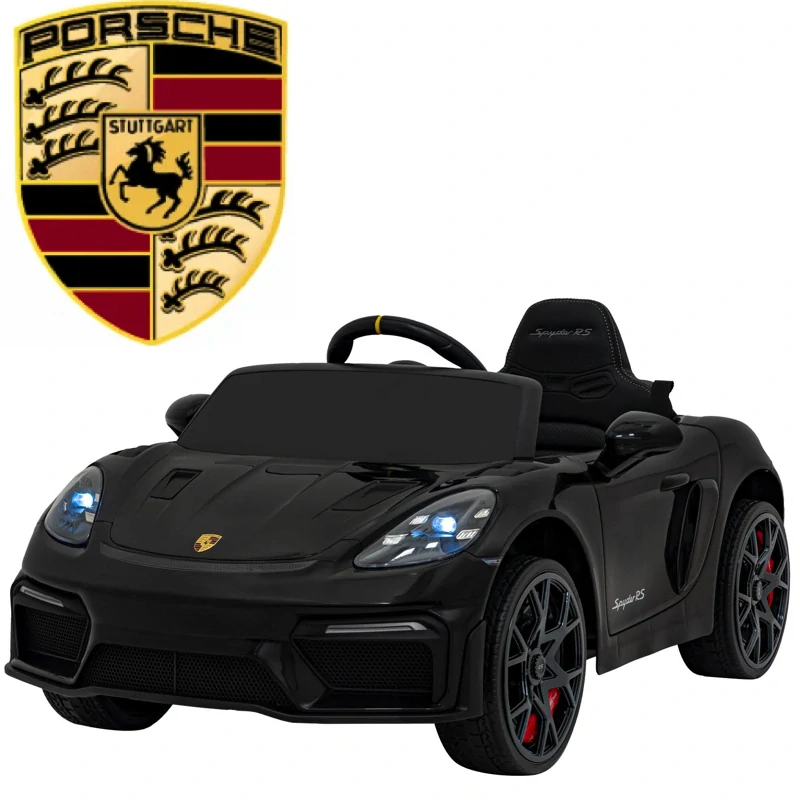 JOKO Elektrické autíčko Porsche 718, Kožené sedadlo, penové kolesá, FM rádio, čierne