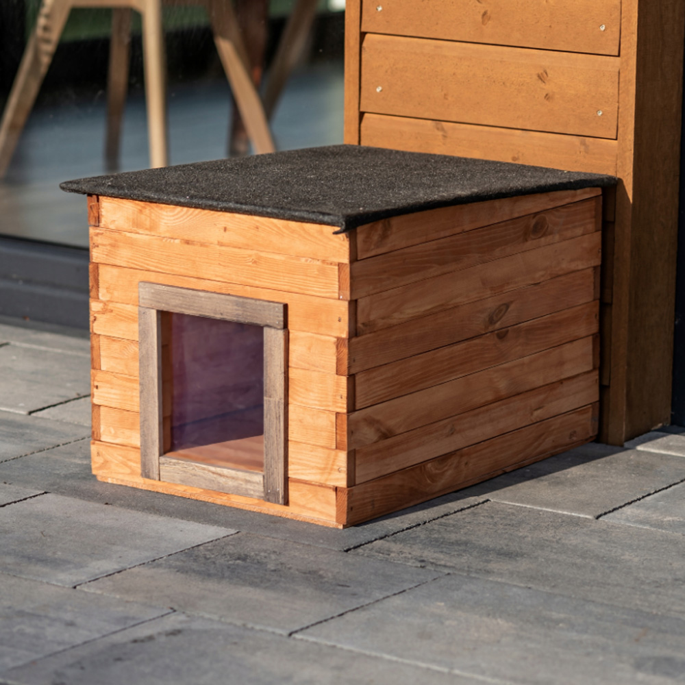MKSTOR Drevená Búda pre Psa, Mačku z Masívu, komplet zateplená, 57cm x 44 x 41cm, TIK