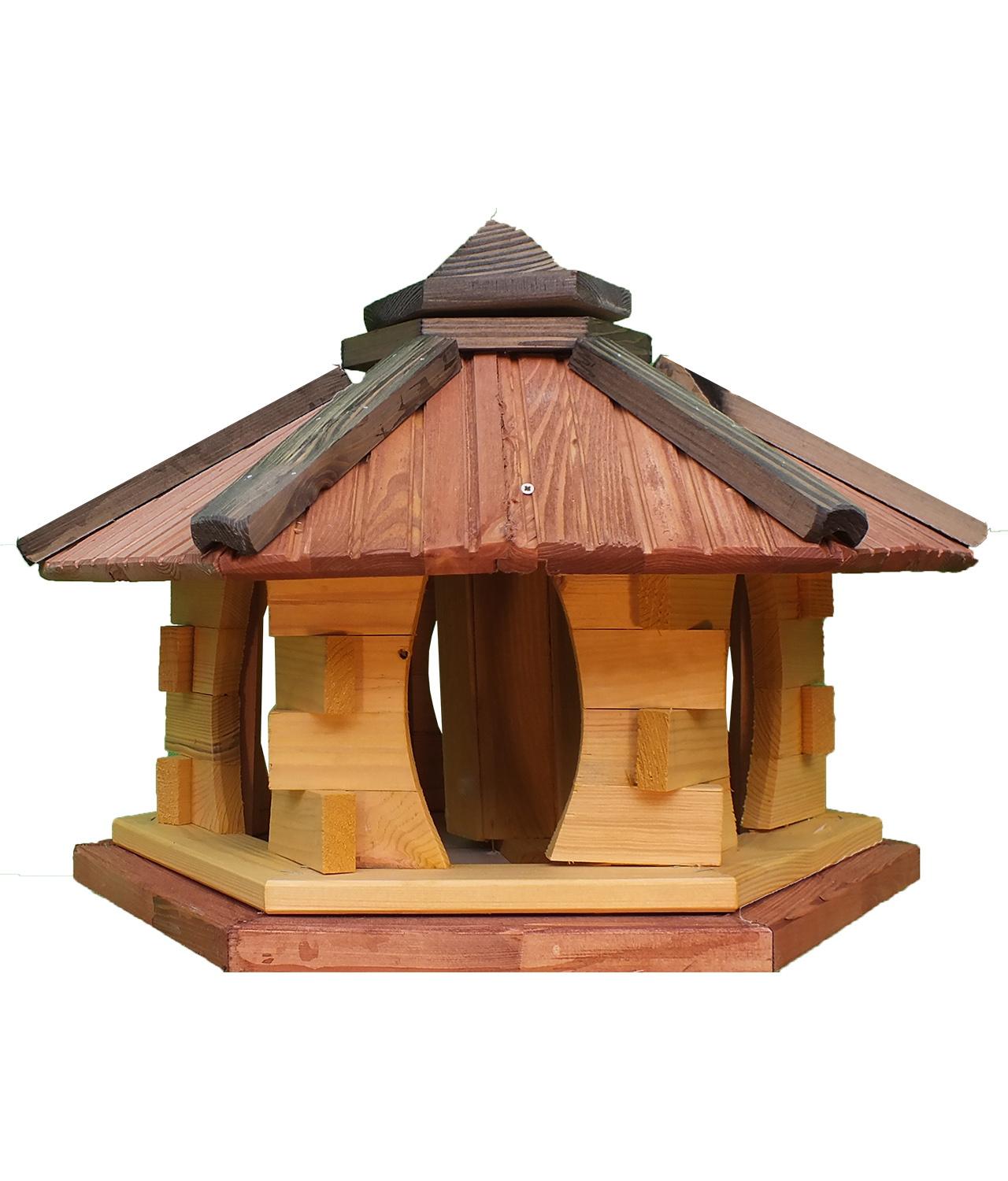 Pevná konštrukcia z ihličnatého dreva, chránená impregnáciou - kŕmidlo je absolútne celoročné a predsa to najdôležitejšie je v zime. Doplnkovou funkciou je zásobník jedla. Stačí naplniť zásobník zhora a nechať gravitáciu, aby sa postarala o zvyšok, pričom vašim hosťom vydá správne množstvo jedla..